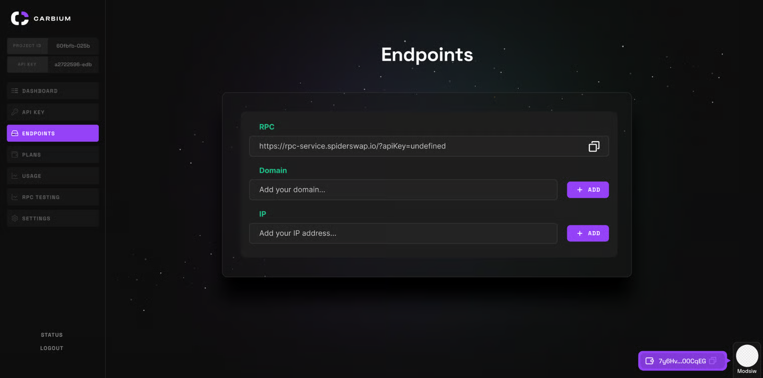 Once you’ve created your API key, you’re ready to generate your custom Carbium RPC endpoint. How to Use Your Endpoint